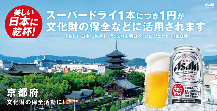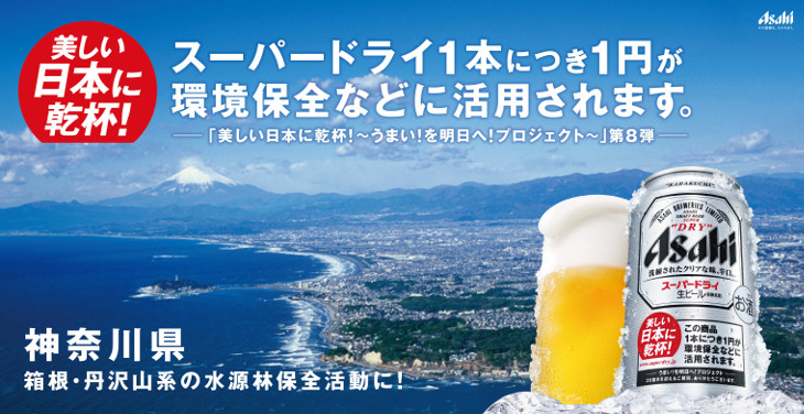 - アサヒビールドライ1本につき1円が47都道府県ごとに自然や環境、文化財保護のために寄付される(購入した地域に寄付)