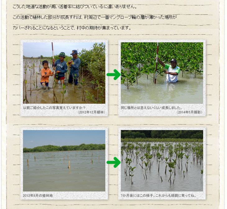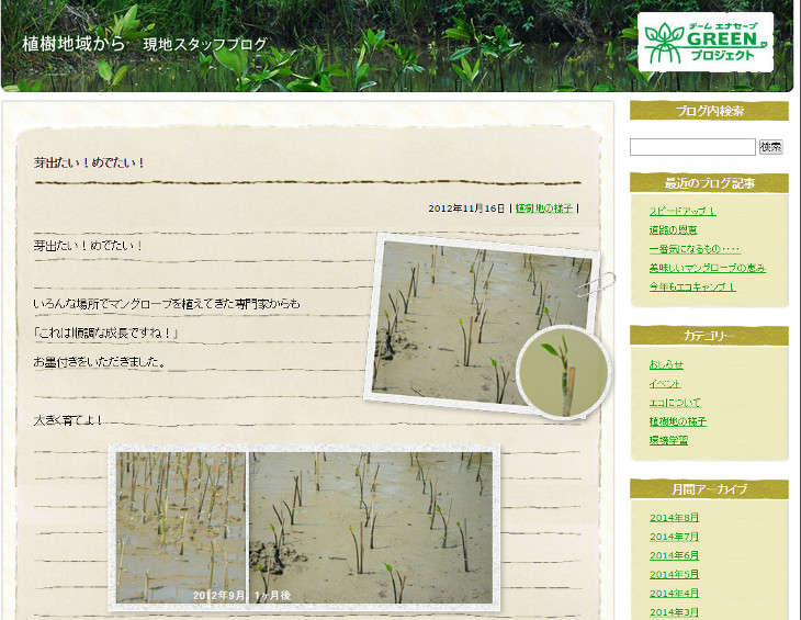 マングローブを植林している現地スタッフのブログが、ダンロップのエナセーブサイトにのっています。