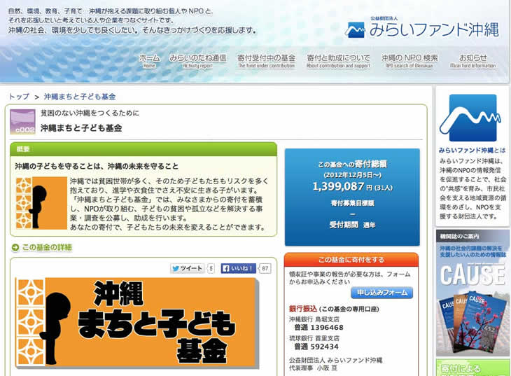 「沖縄まちと子ども基金」(みらいファンド沖縄)