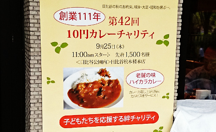 年に一度、9月25日に老舗洋食屋のカレーが、「10円~」のチャリティ価格で味わえます。