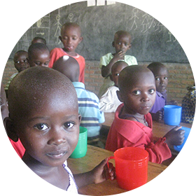 学校給食は1食分が約20円。社員食堂でヘルシーメニューを1回食べると、アフリカの子どもの給食1回分になる。