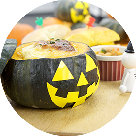 かぼちゃプリン・グラタン・・皮ごと食べられるメニュー、最高ですね!