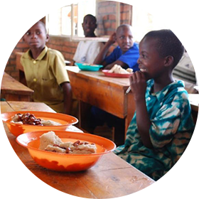 学校給食は1食分が約20円。社員食堂でヘルシーメニューを1回食べると、アフリカの子どもの給食1回分になる。