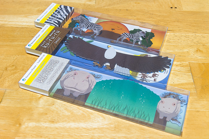 ザンビアの動物や自然などをかたどったメモです。もちろんバナナペーパーで作られています。パッケージもオシャレでかわいいですね。