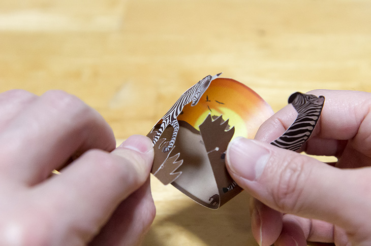 メモをクルッと丸めながら、その切れ込み同士を繋ぎ合わせると・・・