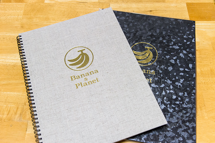 こちらはオーソドックスなバナナペーパー ノート 中綴じとリング式です。サイズも豊富です。