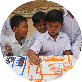 子どもたちが描いた絵は各国で高い評価を受け、フランス・ポンピドーセンターやロシア・プーシキンミュージアム等世界3000か所以上で絵画展も催されているほど。
