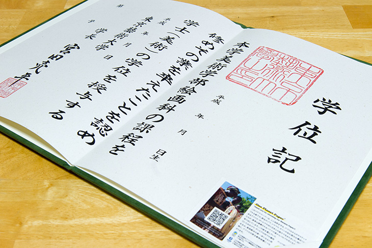 まずは、主役の卒業証書です。バナナの茎の繊維が感じられる、少しざらざらした触り心地です。普通の卒業証書だとつるつるのものが多いのですが、これは触った瞬間に普通とは違うことを感じられます。