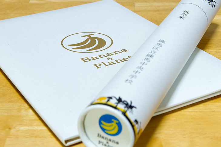 このバナナペーパーはアフリカ南部の国・ザンビアの村で生まれています。世界が目指す持続可能な発展とフェアトレードの基準に沿っていて、商品名はOne Planet Paper® です。今まで廃棄されていたバナナの茎から繊維を取り出す仕事で、貧困にあえいでいたザンビアの村に雇用が生まれました。そして、児童労働の禁止、子どもの就学を推進しています。販売する商品(紙)の売上の一部をザンビアの村に還元し、教育を受けたことのない大人向けの教室も開いています。
