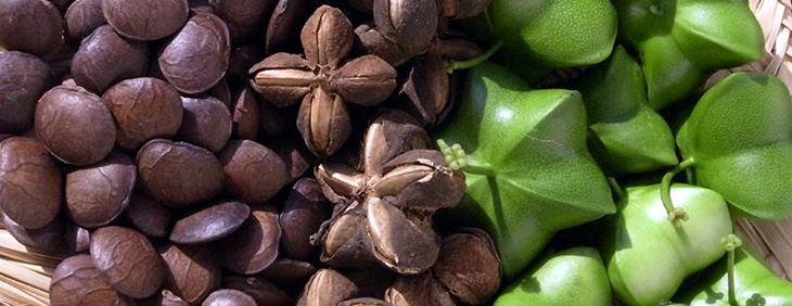 この星形の莢(さや)の中になるナッツの実を搾ったものが「インカインチオイル」です。このナッツには天然のビタミンEがとても多く含まれています。ビタミンEは強い抗酸化作用を持ち、老化防止や美肌効果が期待できる、若返りのビタミンと呼ばれています。