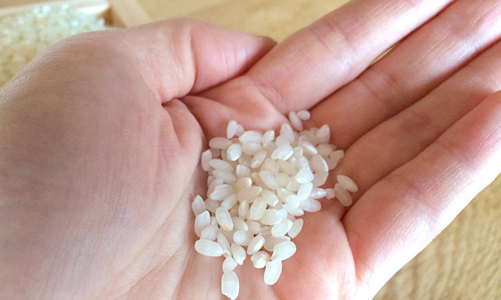 米粒が大きく(コシヒカリの1.5倍ほど)食べ応えがあって、食感はもちもちしていて、甘味があります。
