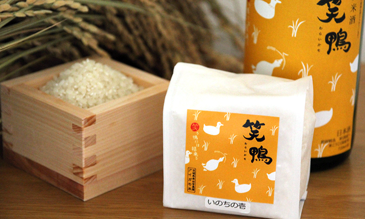 そんななか、農園主の田宮さんが消費者とつながりたいという思いで2002年から交流を続けていた「茨城アイガモ水田トラスト」のメンバーと試行錯誤しながらようやく実現させた日本酒が笑鴨です。同じ県内で震災の被害を受けた来福酒造さんに賛同・快諾いただくことで、実現することができました。