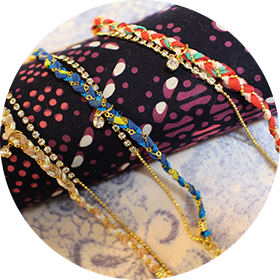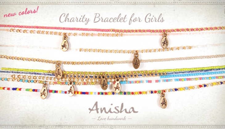 色鮮やかなブレスレットは、ファッションブランド「Anisha(アニーシャ)」が展開しているもの。