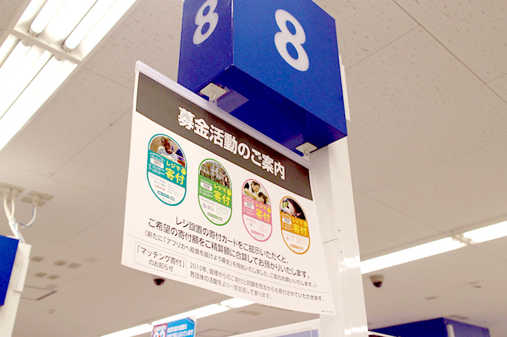西友には、レジ付近に募金用カードが掲げられています。これをレジに持参すると、希望する額を寄付することができるのです。さらには、寄付する対象団体も選択することが可能です。