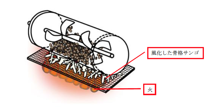 この貴重な風化した骨格サンゴを200℃まで熱してじっくり時間をかけてコーヒー豆を焙煎します。