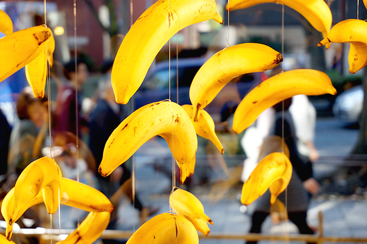 この日のために、LUSHの商品の原材料としても使っているコロンビア産の栄養価の高いフェアトレードオーガニックバナナを特別にディスプレイしたんだとか。