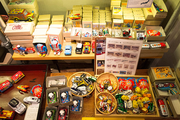 東京に唯一残ったブリキのおもちゃ工場「三幸製作所」の製品たち。子どもが遊んでけがをしないように、角の部分を丁寧に巻き込んであったり、安全な塗料を使用しています。細かいところまで気が配られているのが、手に取ると分かります。ぬくもりのある、モノづくりの粋を集めたようなおもちゃたち。大人には懐かしくて、今の子どもたちには逆に新鮮に映るのではないでしょうか。
