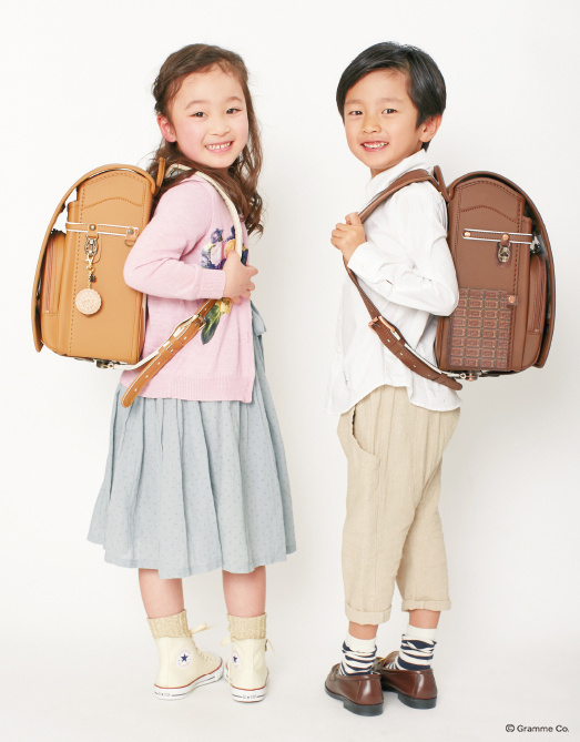 (右)Q-pot.ランドセル メルティーミルクビスケット ¥88,000+税