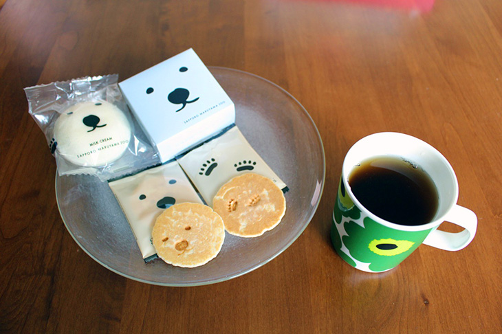 まず目が行くのが、シロクマの顔がドアップになったパッケージです。このパッケージには2種類あり、ミルククリームが入っているものが白、ミルククリームと餡がはいいているものが薄い水色がベースになっています。
