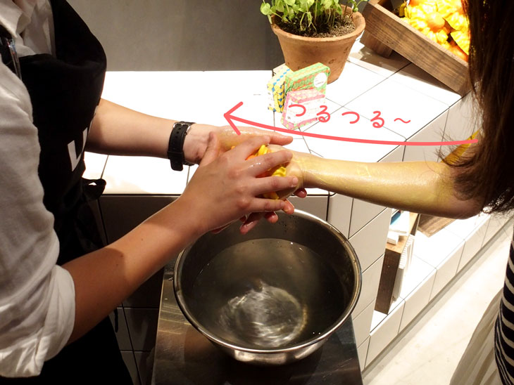 泡立てタオルでもこもこ泡を立てる使い方しか知らなかったので、この使い方は新鮮でした。