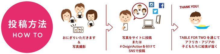 「おにぎりアクション2016」への参加はとっても簡単!!おにぎりの写真を撮って、 特設サイトまたは、ハッシュタグ(#OnigiriAction)を付けてSNSに投稿するだけなんです!!
