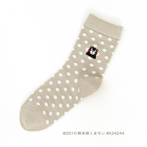 くまモン刺繍入りドット柄ソックス 20:ベージュ