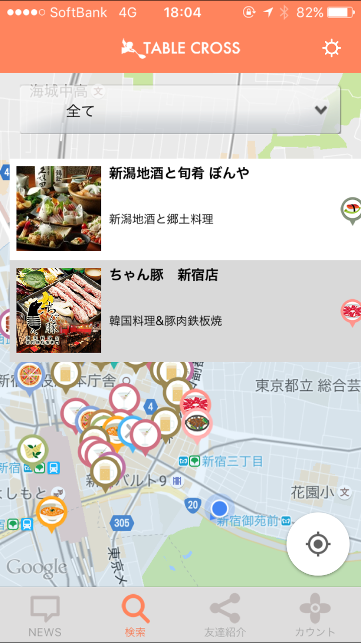 ”マップから探す”で、現在地からお店選びが出来る。