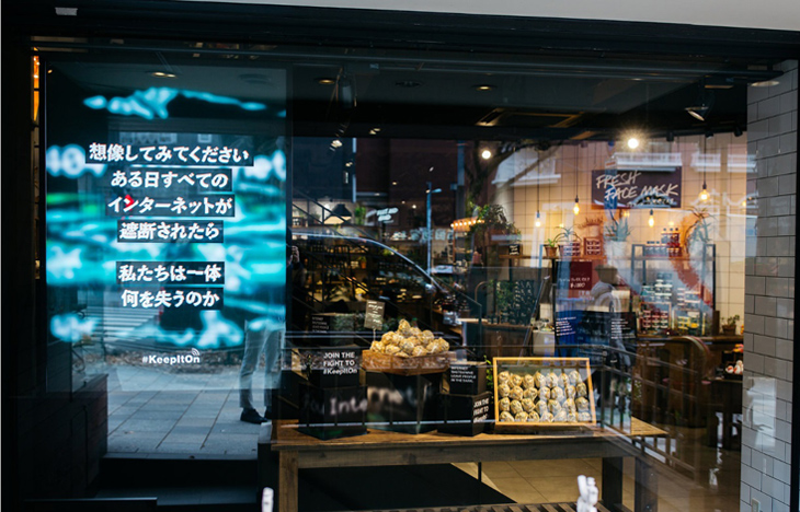 LUSHでは、Access Nowの「#KeepItOn」キャンペーンを支援するため、オンライン上の権利がわたしたちにどのような影響を及ぼすかを、LUSHの店舗とオフィシャルサイトで広く告知して、この取り組みに賛同する方からの支持を「申立書」への署名として募っています。