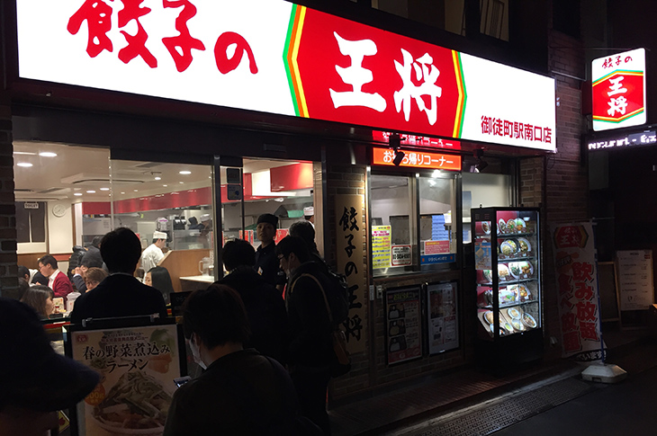 火曜日の19時を過ぎ。行列している某激辛ラーメン屋や、人気居酒屋などには目もくれず、ひたすらに餃子の王将を目指す。そこは行列や待ち時間など無縁の存在である。餃子の王将は、戦い疲れた我々サラリーマンをいつだってを待っていてくれるのだッ!
