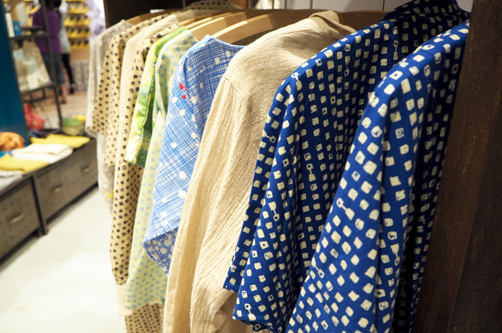 店員さん「農薬がついてないので、コットンがふんわりしているんですよ。長く使っていただきたいので、襟には洗濯しても伸びにくい工夫をしています!」