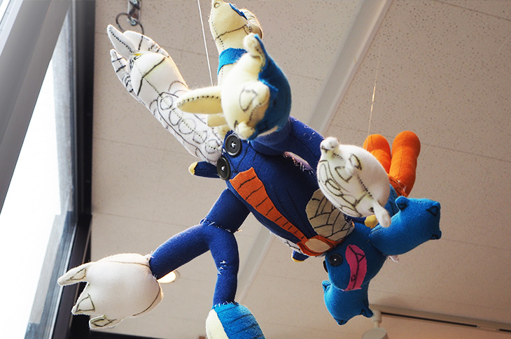 作品のモチーフになるのは、普段テレビで観たアニメなどのキャラクター。