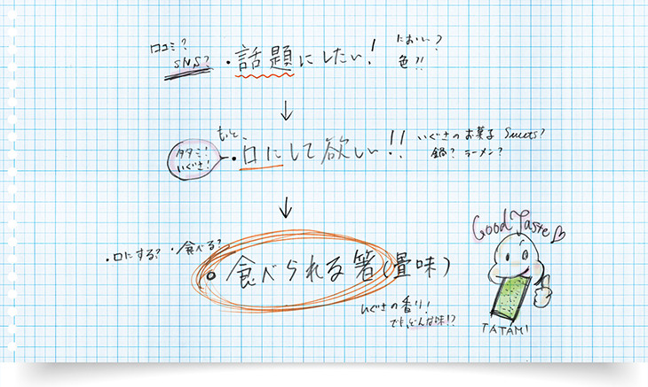 食べれるお箸というだけでビックリな商品ですが、さらに畳味。 こんな変な商品はなぜ開発されたのでしょう?