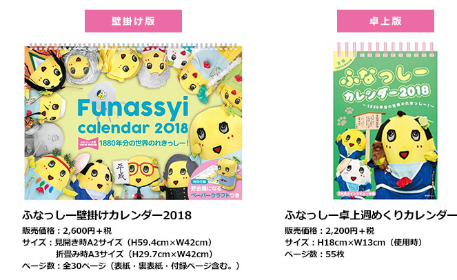 <寄付つき> ふなっしー壁掛けカレンダー2018