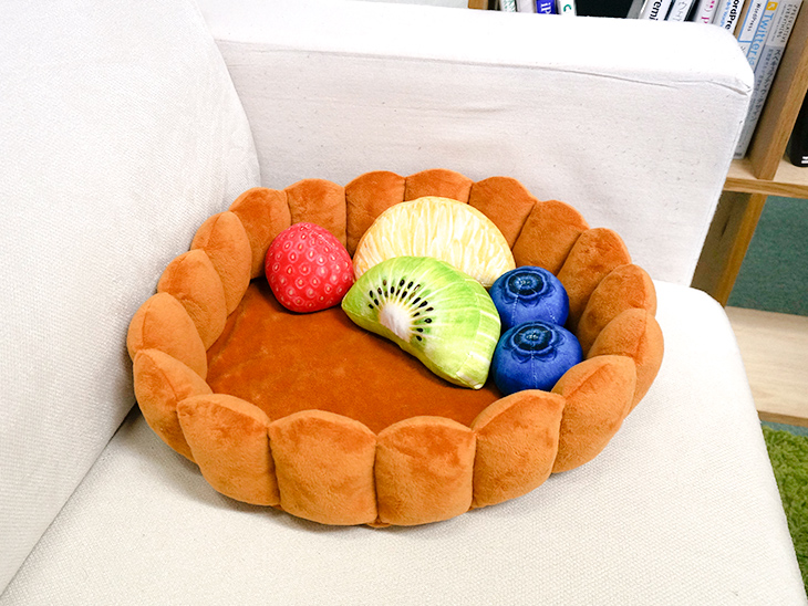ん?タルト型のクッション、しかも食べかけ?って思って使用例を見てみると、