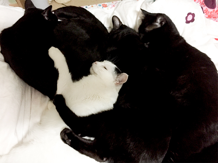 Mさんは他にもご自身で保護した猫も含め、合計4匹と暮らしているそうです。一人暮らしと言っても、とっても賑やかそうですね(*^^*)