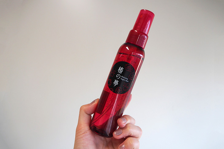 被災地で不眠に悩む方のために開発されたという、おやすみ前のフレグランス、「リラクシングナイトミスト 椿の夢」。