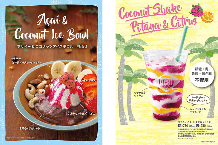 ▼アサイー&ココナッツアイスボウル、ココシェイク ピタヤ&シトラス