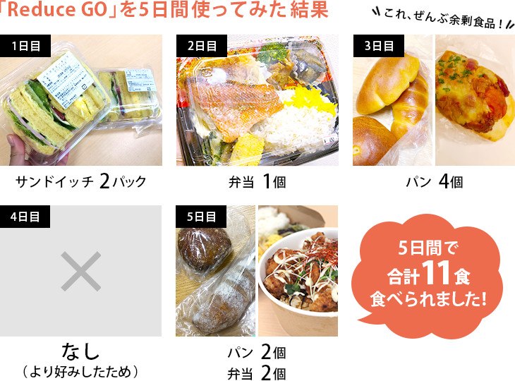 以上、5日間で、捨てられていたかもしれない合計11食の余剰食品を受け取ることができました!