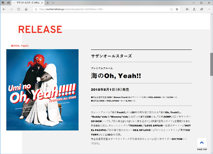 アルバムの1曲目には、サザン初のマキシシングルとなった“TSUNAMI”を収録。