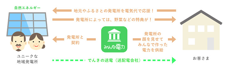 そんなみんな電力は顔の見える電力サービスを提供しています。これは“電気の生産者を選べる“というユニークなサービスなんです。