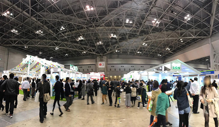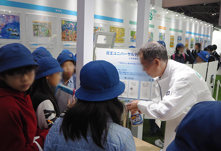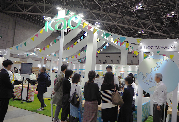 花王の展示テーマは「地球のきれいのために」と「人のきれいのために」。地球環境や人の生活に配慮した自社商品や活動を紹介してて、たくさんの人が集まっていました。