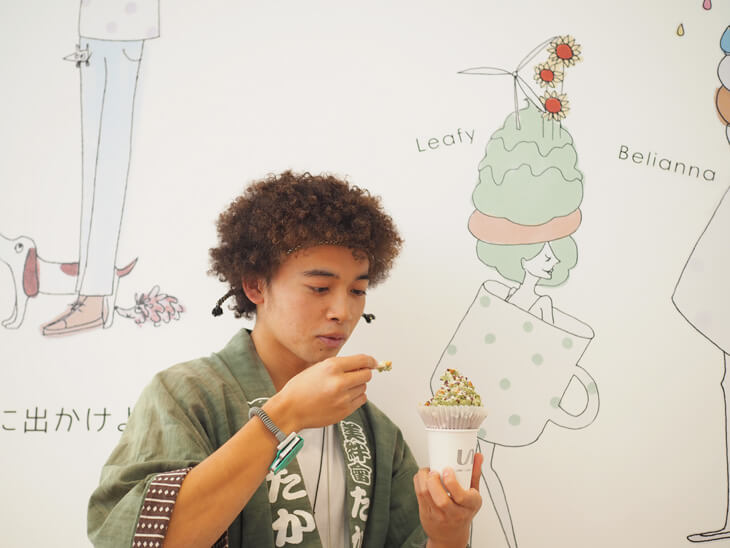 ▼今回ははっぴの色に合わせて抹茶×豆乳クリームの「Leafy」(リーフィー)をchoice