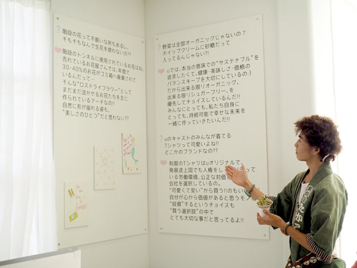 美術館のように店内の壁の至る所に記されたメッセージ。