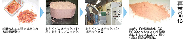 そんな鉛筆製造と環境の問題に10数年前から取り組んでいるのが、都内で鉛筆を60年間作り続けてきている「北星鉛筆」さん。鉛筆の生産過程で排出されるおがくずをなんとかできないか、という研究を進めていて、いくつかのリサイクル商品を開発しています。