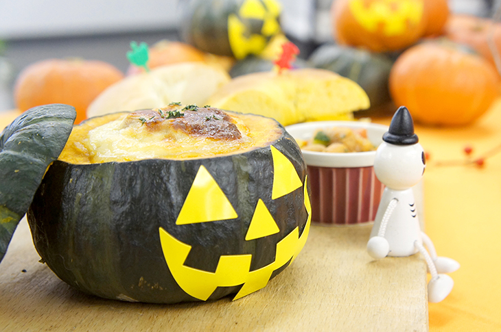 かぼちゃプリン・グラタン・・皮ごと食べられるメニュー、最高ですね!