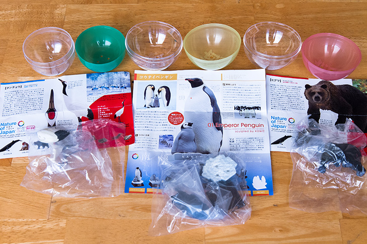 今回「ネイチャーテクニカラー」シリーズでガチャガチャを回したのは「南極」シリーズ、「日本のいきもの01」シリーズの二つです。結果はご覧のとおり。どれもリアルにできていて、全部集めたくなってしまいそうです!