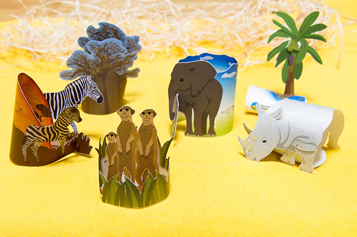 ザンビアの動物や自然などをかたどったメモです。もちろんバナナペーパーで作られています。パッケージもオシャレでかわいいですね。