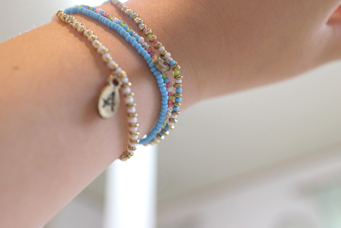 色鮮やかなブレスレットは、ファッションブランド「Anisha(アニーシャ)」が展開しているもの。