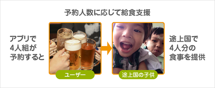 - アプリを通して予約した人数分、子どもの給食費として寄付