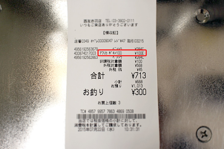 レシートには、今回の寄付金額である「100円寄付」の印字がなされました。